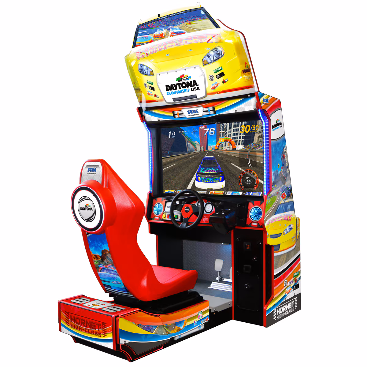 Daytona, Sega, Championship USA, Racing Arcade, Driving Game, 4-Way Shifter, Stock Car, Linkable Multiplayer, HD Screen, Classic Arcade, Hornet Car